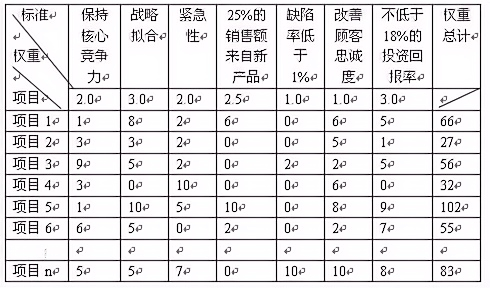 3.有助于引进一个连贯统一的项目评估与选择机制。对项目的特性以及成本、资源、风险等项目要素按照统一的计分标准进行优先级别评定,随着企业的发展或者外界环境的不断变化,这种项目选择和评定就会周而复始地进行,从而形成企业的一种机制,待新的项目组合出现时便有章可循。